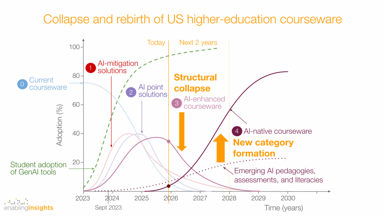 Make no mistake, this is the most significant inflection point in the $3B market for US higher education since digital courseware emerged 20 years ago. Those who understand the forces behind the collapse—and act early—will define the next decade.